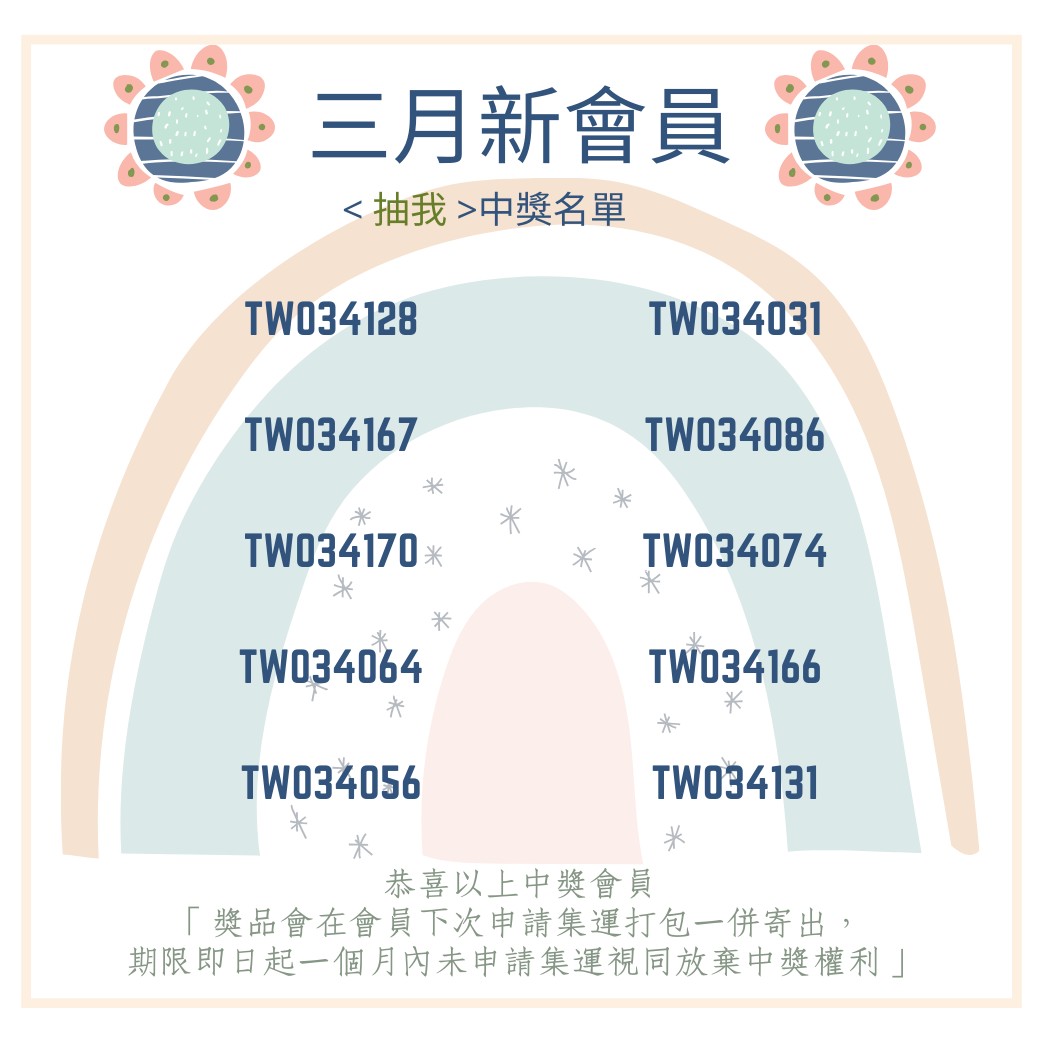 恭喜3月中獎新會員: