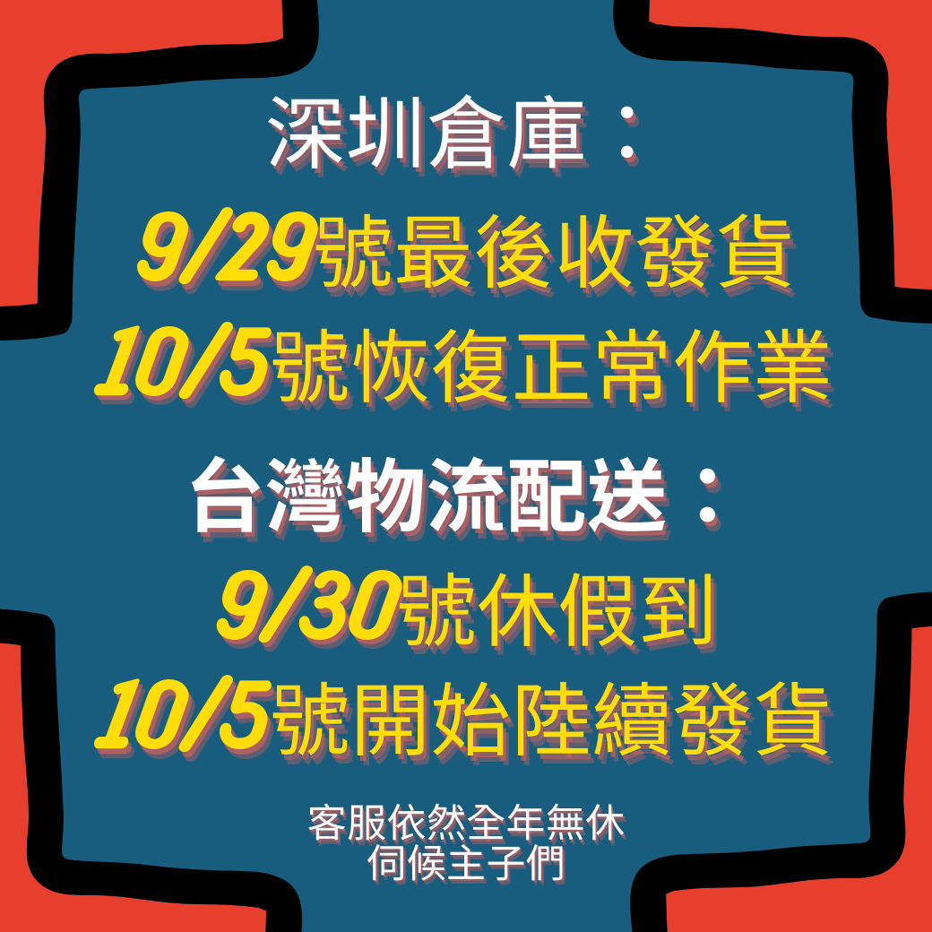 10/5(一)起恢復倉庫內部作業,並陸續發貨。