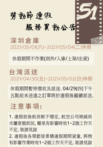 2021年 |五月| 五一勞動節連假服務異動公告