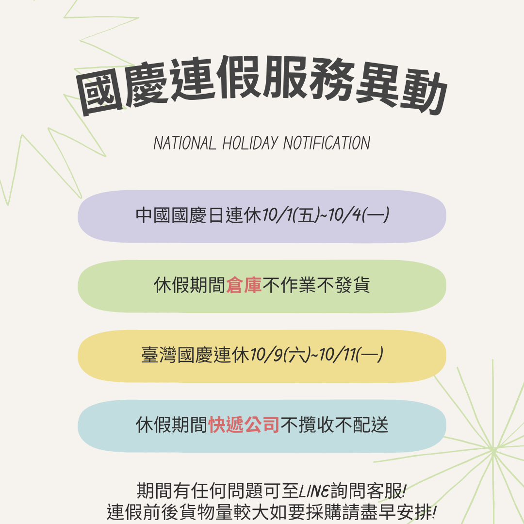 連假前後貨量較大, 可能派送時效上稍有影響, 請知悉.