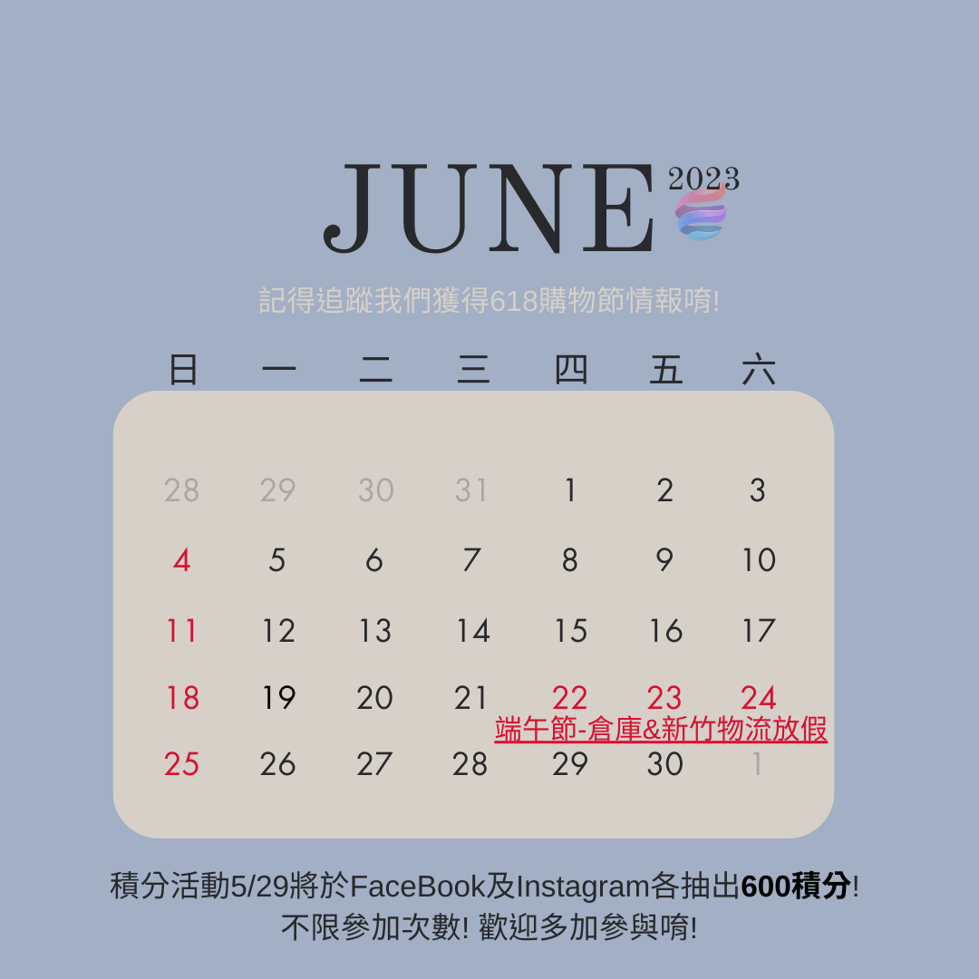 5月有辦抽獎活動 Facebook臉書 及 IG 各要抽出600積分~ 不要錯過囉!